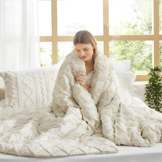 No more waking up drenched in sweat or kicking off heavy covers in the middle of the night. Our comforter is designed to let air flow freely, keeping you cool when it’s warm and cozy when it’s cold.