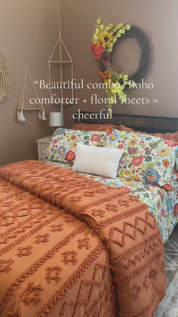 Design: Intricately tufted geometric and floral patterns add depth, texture, and an elegant boho-inspired look.